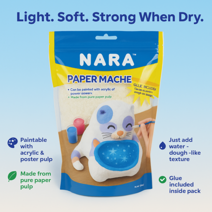 NARA Paper Mache Powder with Glue Included Extra Soft, Air Dry Paper Pulp for DIY Craft, School Projects & Kids Art Activities, Non-Toxic & Gluten-Free Sculpting Material, 100g