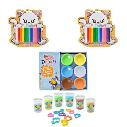 Kiddy Clay Combo Pack of 3 – Includes 6-Color Dough Set with 6 Tubs, 10 Shape Cutters & 2 x 12- Clay Round Stick Sets (200g Each) – Ideal Gift for Kids, Soft Clay for Arts, Crafts & DIY Creativity