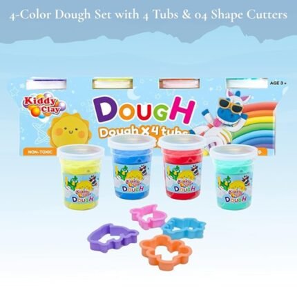 Kiddy Clay 4 Colours Modelling Dough Set – 25g Each – 4 Tubs, 4 Fun Shape Cutters, Soft, Air-Drying Clay for Creative Crafting, Packed in Paper Box, Ideal for Arts, Crafts & DIY Projects – 100g