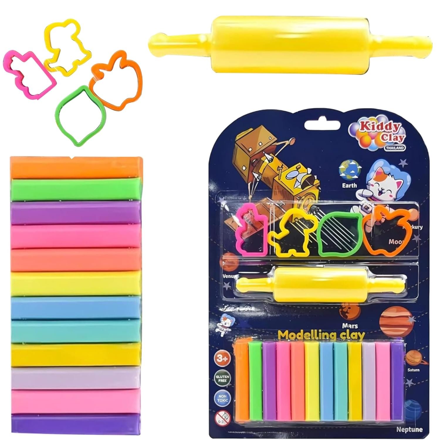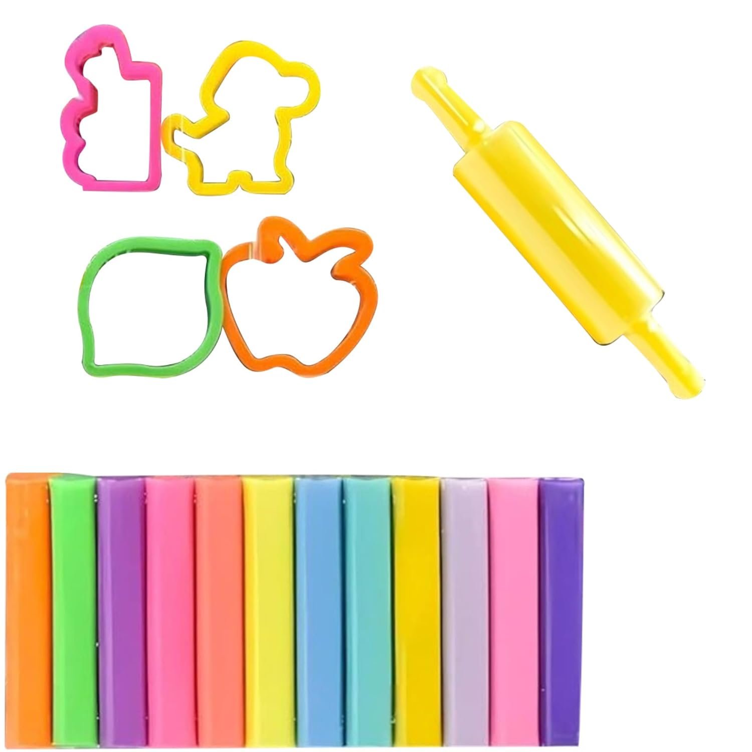 Includes 12 Round sticks of clay & 4 Cutters and Roller in Blister Card in one pack: The set includes 12 Round sticks of clay (150g per pack) and 4 Cutters and Roller in Blister Card, offering a wide range of hues for all your creative projects.